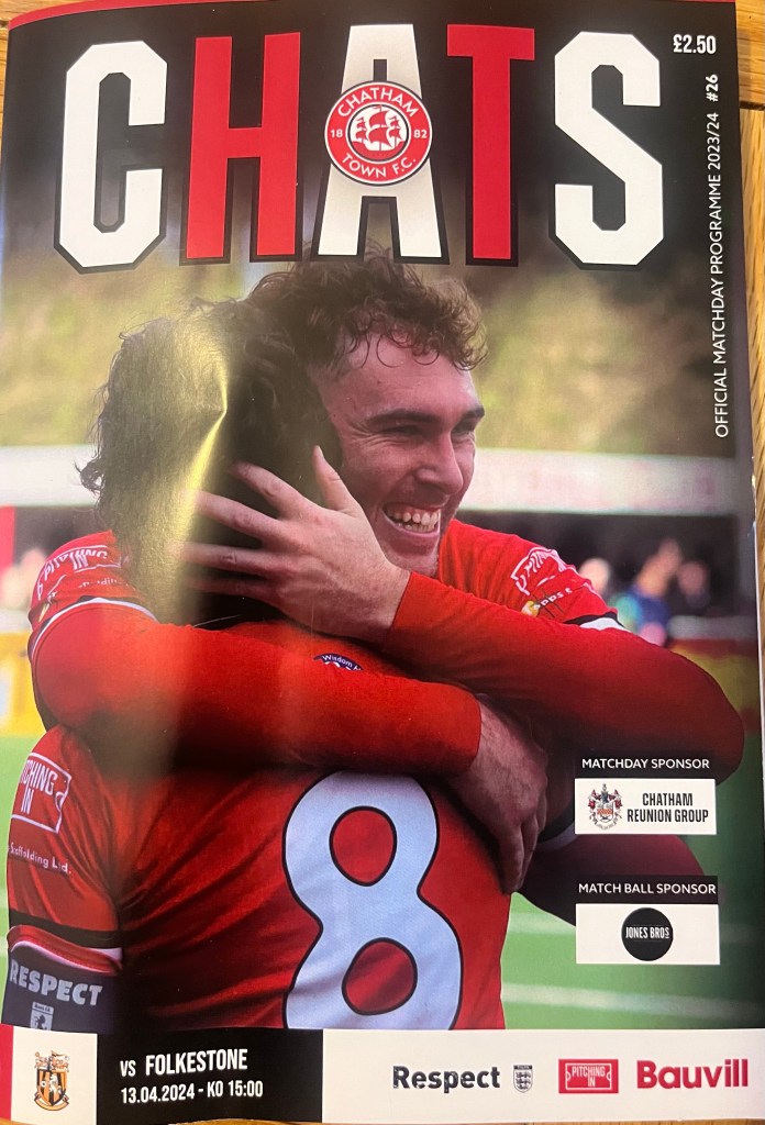 Their opponents today were Folkestone Invicta who have finally this season, under new manager, Andy Drury (an ex-Chat himself), secured safety and also begun to forge a new style of play, which has been a challenge in the immediate period following the departure of Neil Cugeley who had managed the Seasiders since 1997 until his departure in 2023.
