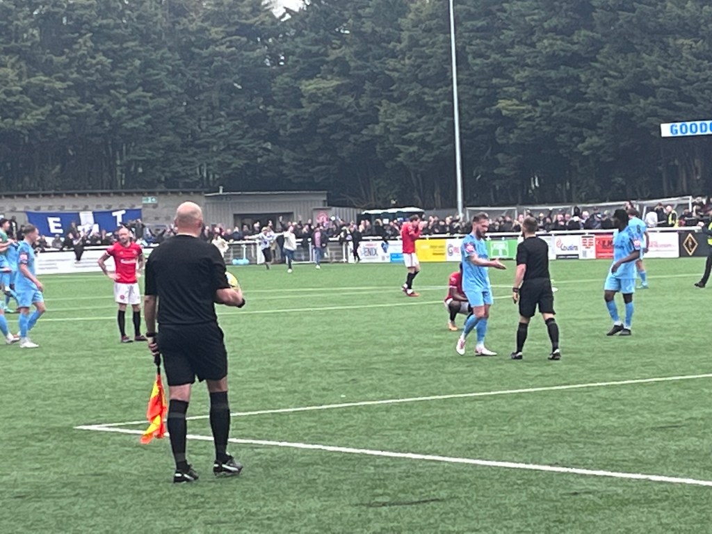 At full time the whistle blew and the away fan contingent ran into the pitch to celebrate amidst a cloud of blue smoke. Enfield Town earned this victory and should make a real go of their opportunities in the National League South next season.