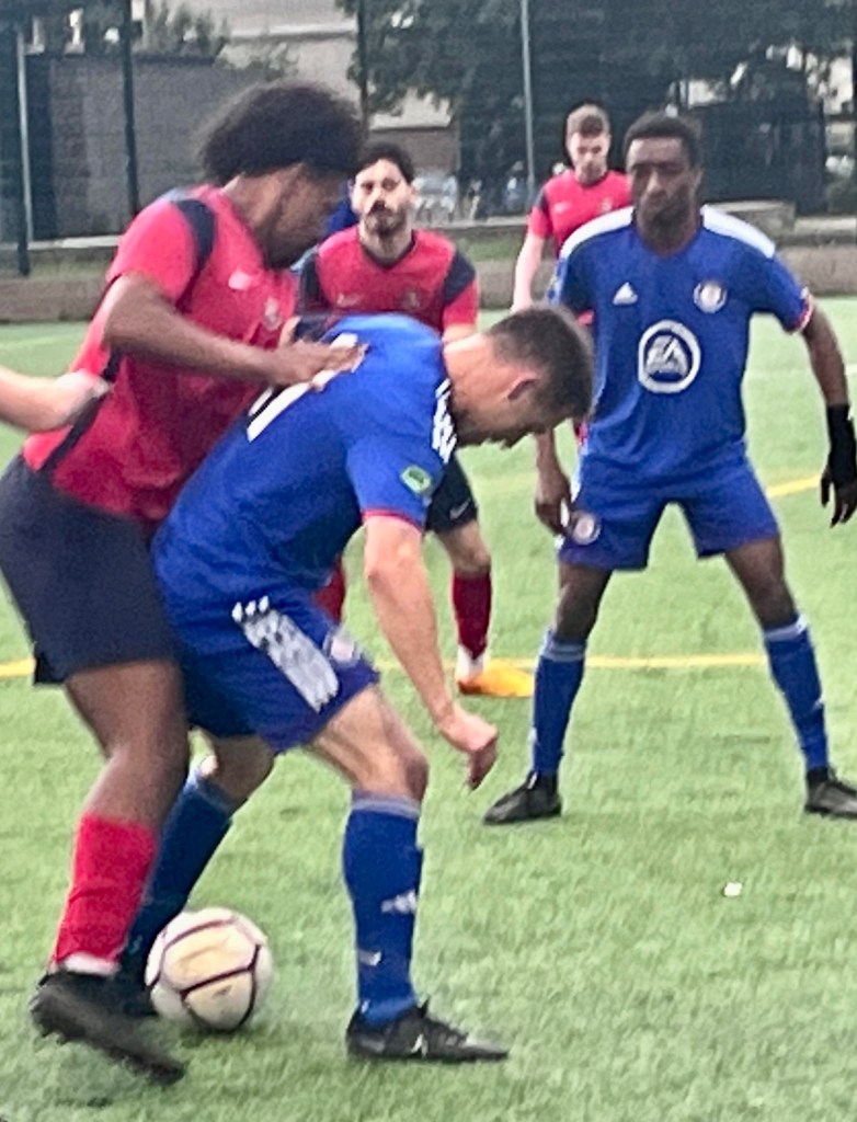 The match kicked off with both sets of teams pushing the ball forward and taking risks in their attempts to score. With fifteen minutes on the clock, Camden United’s Vinicius Santana stabbed the ball home to put his team 0-1 ahead.