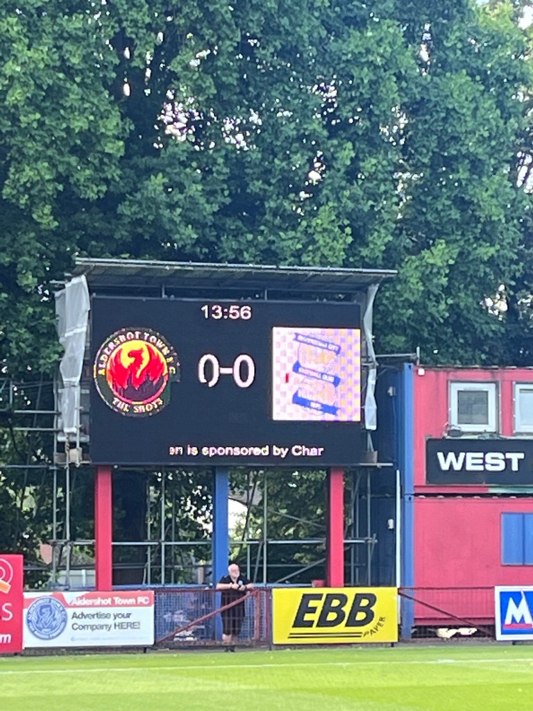 A bright and warm Saturday afternoon with a 2,00 pm kick off, attracted me to drive on a busy M25 and A3 down to Aldershot to watch a friendly between Tommy Widdrington’s Aldershot Town of the National League and the team I have supported since boyhood, Birmingham City, newly managed by Chris Davies as well as being “newly located” in League One.