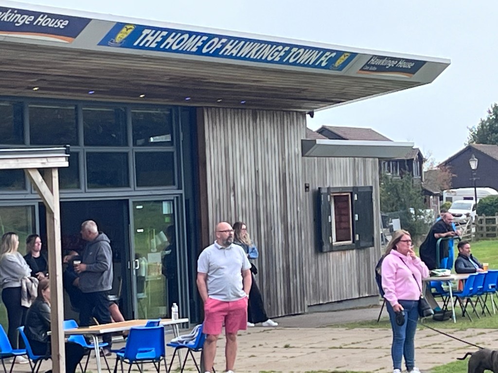 The Hawkinge Pavilion Sports Ground provides covered standing under the main sports club and bar’s canopy. The pitch is a basic roped off affair, but there was free car parking, available chairs for seating and no entrance charge, plus I was given a nice welcome in the clubhouse!