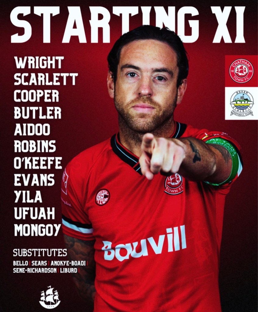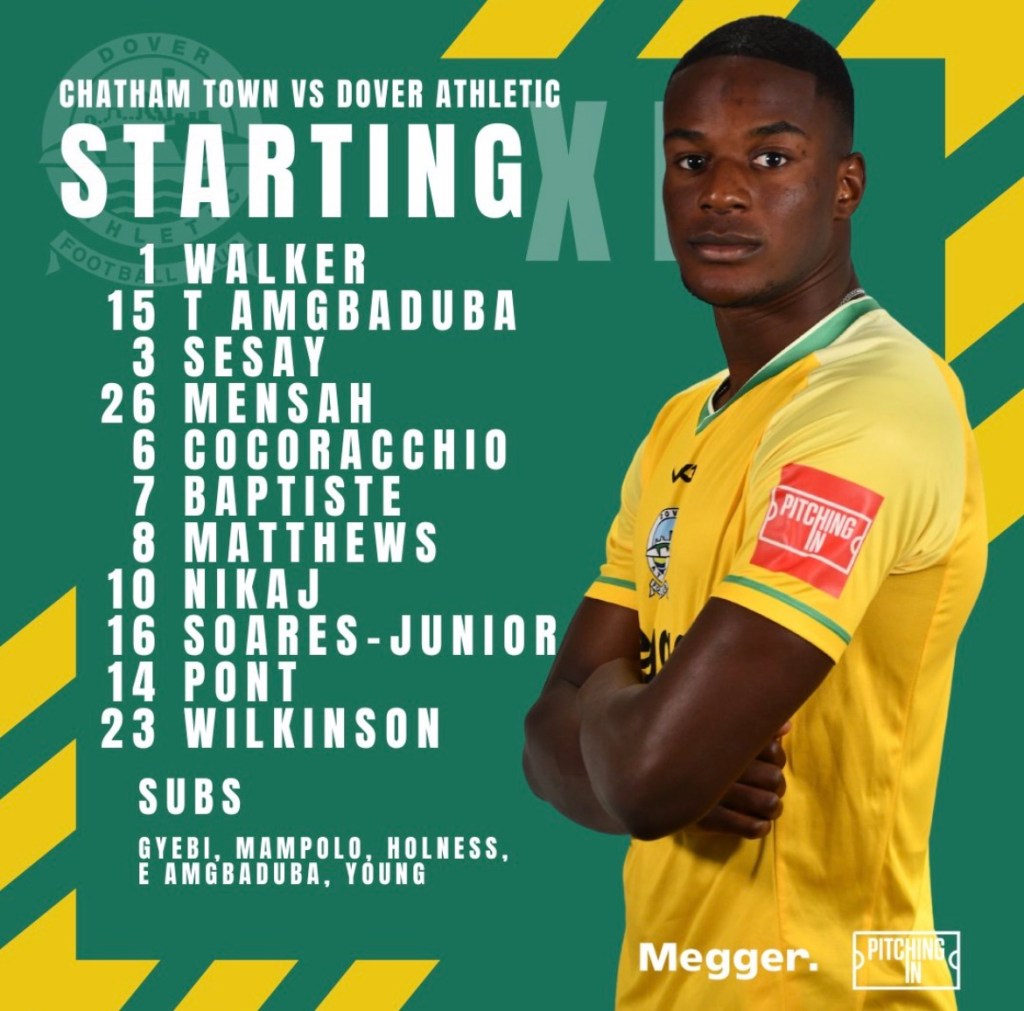 The goals thus far for Dover Athletic have come from, George Nikaj (13 goals), Ruben Soares-Junior (9 goals) and Luke Baptiste (8 goals). Chatham Town’s players and manager would have known they needed to seal off the fuel to the Dover Athletic attack if they were to win today.