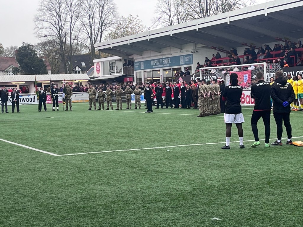 Prior to kick off the Mayor, Tracy Crouch MP, and members of the armed services joined Chatham Town and Dover Athletic FC Staff and Players to observe two minute’s silence and play the last post, as the clubs remembered those who fell in service of their country.