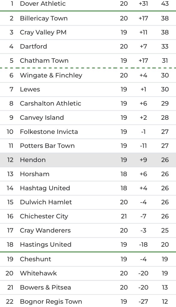 The home side, managed since 2021 by Brad Wellman, have had a positive first half of the season and came into today’s game sitting in ninth place, just outside the play off spots, with 28 points from 19 games. Goals this season, for “the Gulls”, as Canvey Island FC are nick-named, have come from Chris Harris (7 goals), Jaxon Brown and Bradley Sach (both 6 goals).