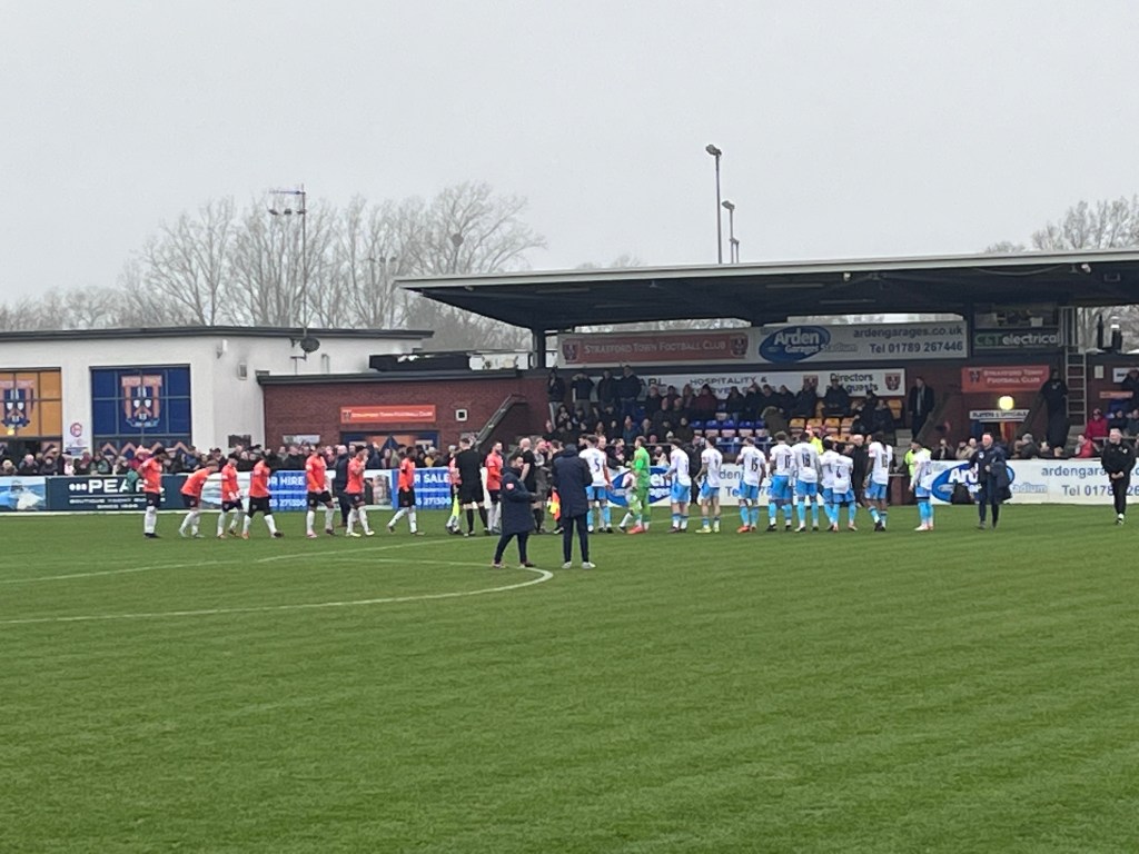 Stratford Town play in the Southern League Premier Division Central, where they occupied fourth place in their efforts to secure a play off place and secure promotion to the National League North. Their opponents today, Kettering Town, have been the league’s runaway leaders this season, so this was truly billed as a festive “cracker”.