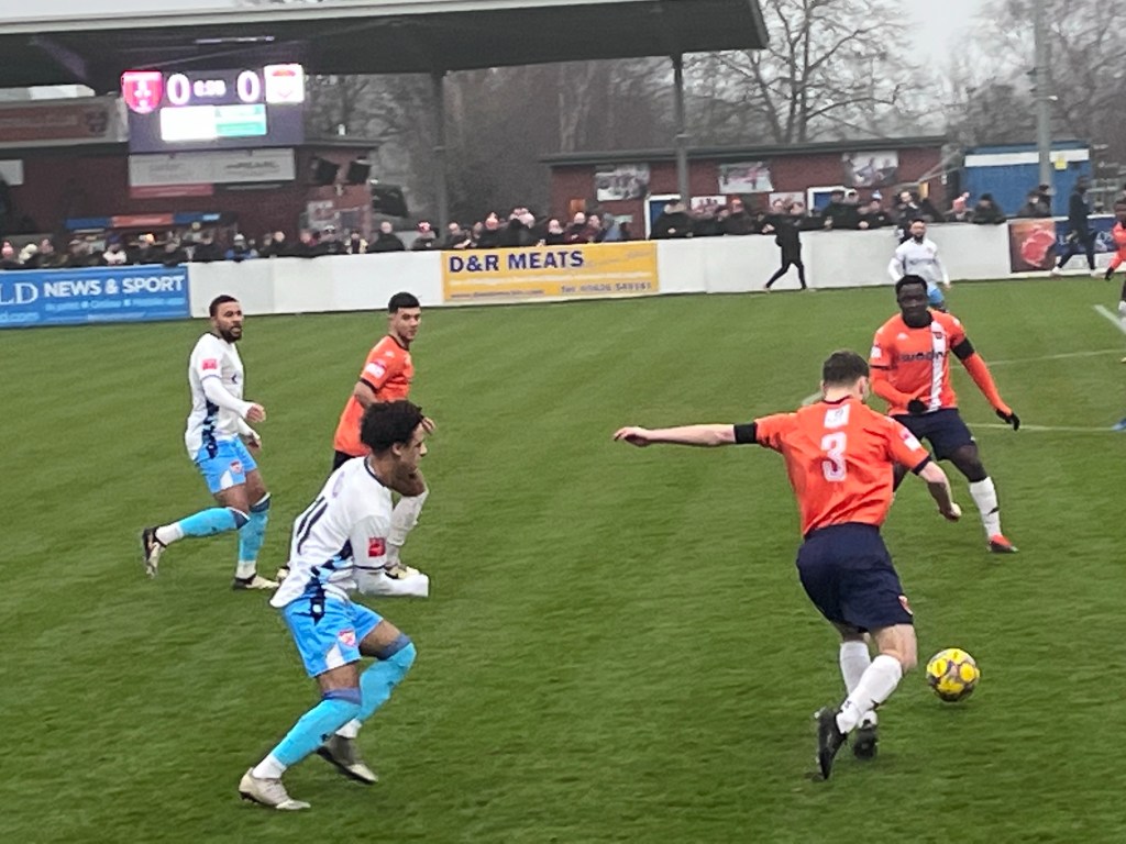 The game opened in front of a huge Matchday attendance of 1664, with the league leaders stamping their authority, when on twelve minutes Gary Stohrer’s header, from a corner, struck a Stratford Town defender before nestling in the net, to make it 0-1.