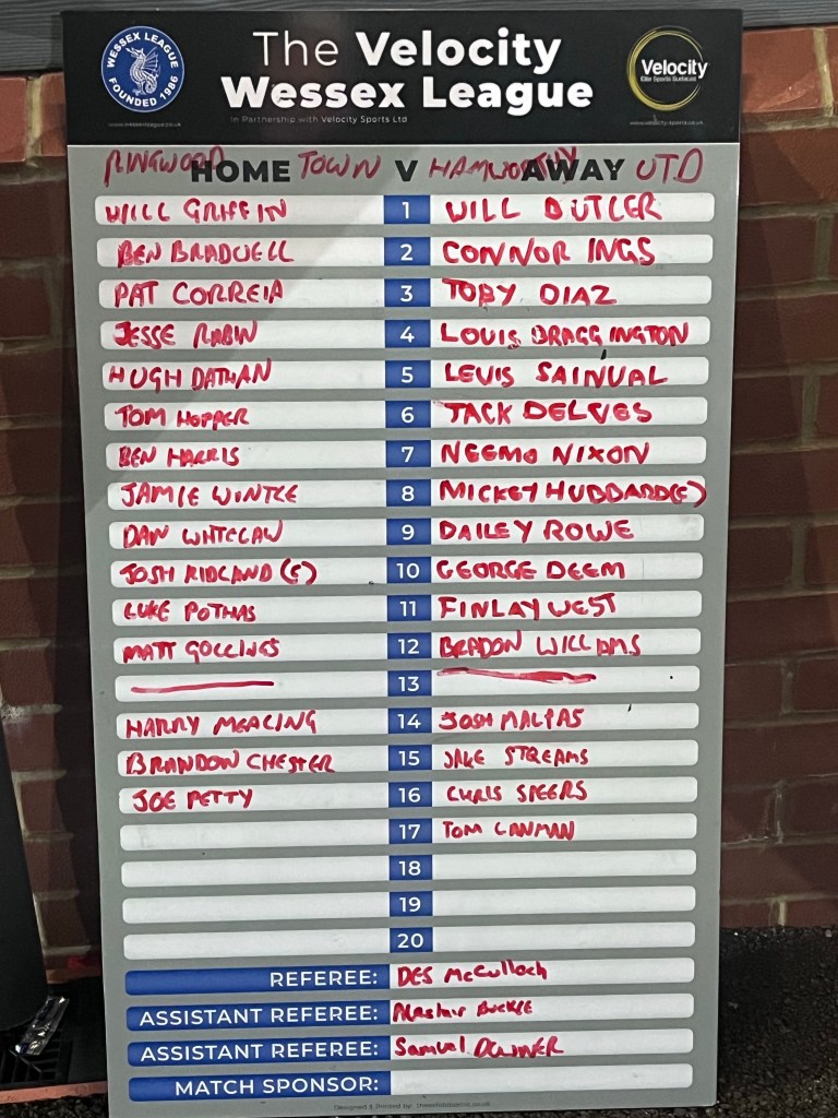 The first half proved that looks can be deceptive. Neither side really found their feet going forward and the game saw most action taking place in the middle of the field. Ringwood Town looked stronger in the first 25 minutes, with Hamworthy United finding some power through Neemo Nixon, on the right, to look the strongest upto the half time whistle.