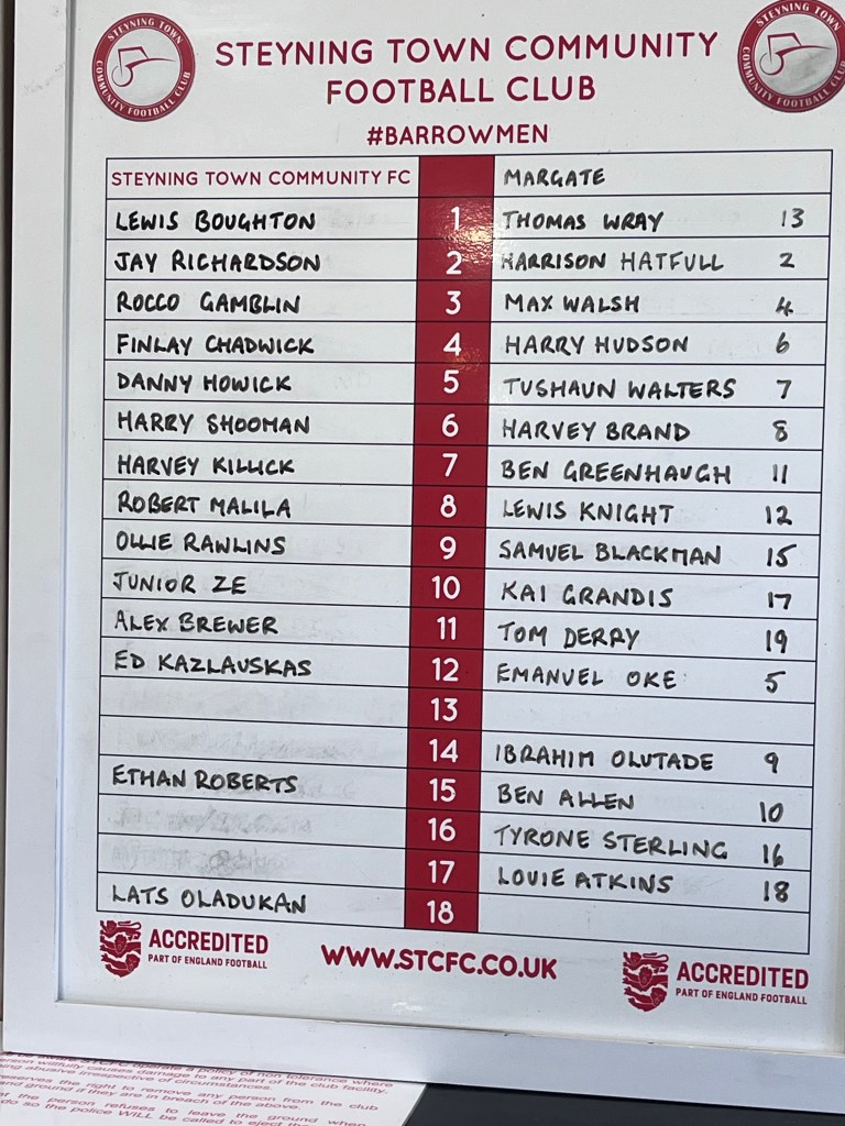 At fulltime it was Margate FC who took the three points in front of the crowd of 210, in their push for the play-offs. Steyning Town look set for relegation unless they can somehow find some defensive stability.