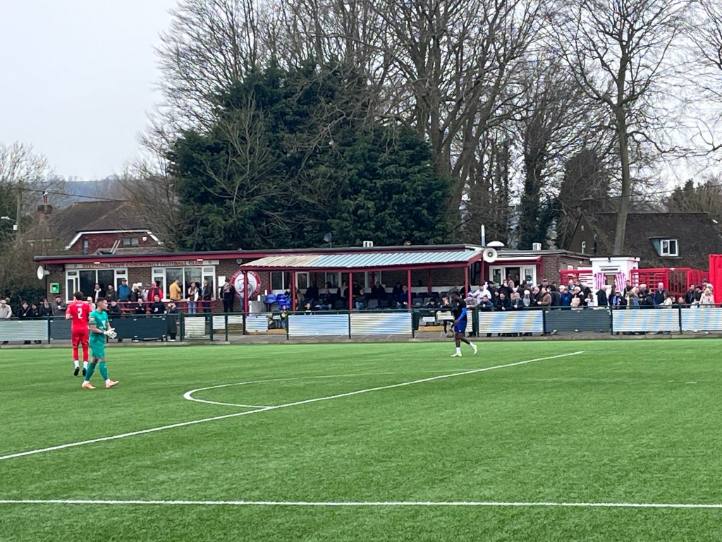 Steyning Town have had a tough season to date, since gaining promotion from the Southern Combination Football League last season. The Barrowmen, as the home side are known, sat bottom of the league, with just five wins from their 35 matches, at kick off, some eleven points off Littlehampton Town who occupied the last non-relegation place. Manager Gerry Murphy would have been looking to the goals of Jack Barnes (7 goals), Harvey Killick and Alfie Rogers (both 5 goals), to fire his side into an unlikely win against their promotion chasing opponents.