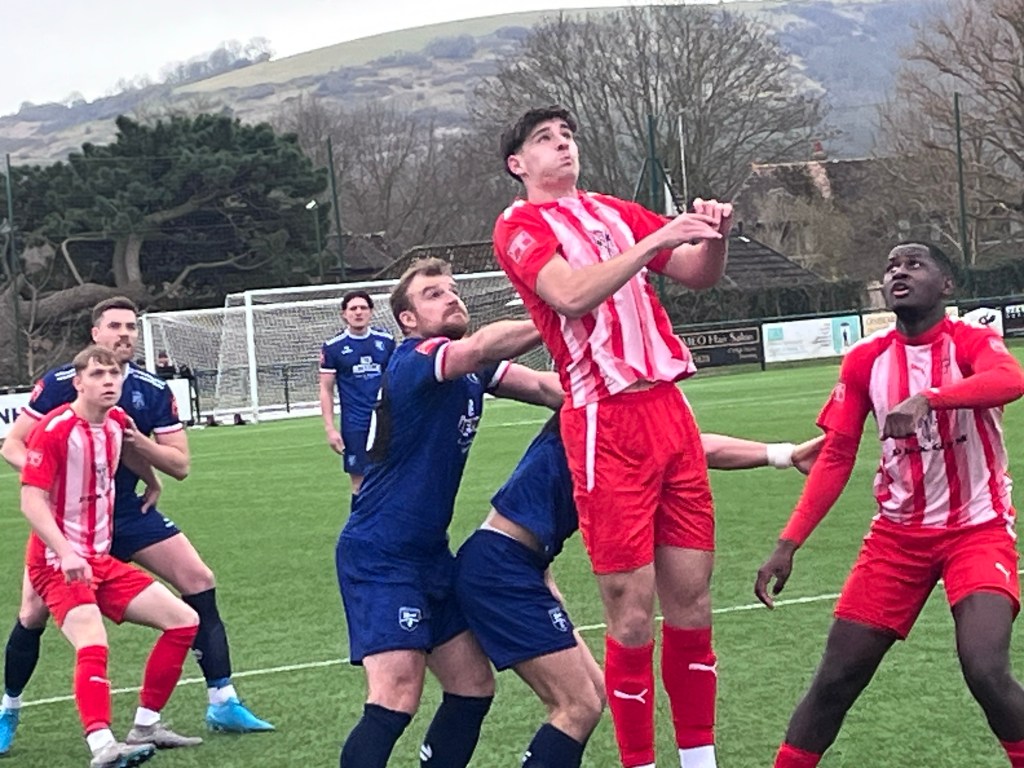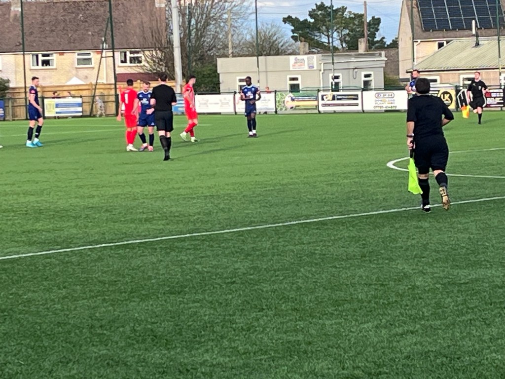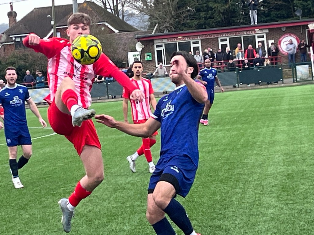Steyning Town fought hard to stay in the game and with six minutes left in the half, they went close to scoring themselves, from a well struck free kick, taken by Alex Brewer.