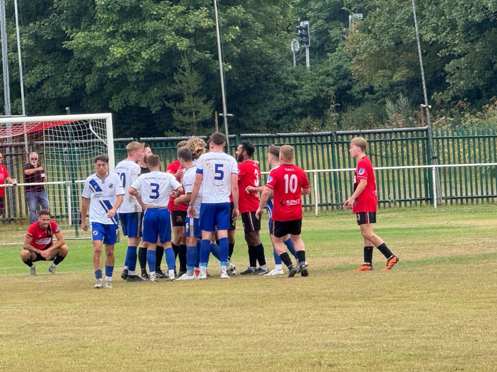 Immediately after this the game swung when a mistimed tackle led to a second yellow and subsequently a red card, for a Bearsted player.