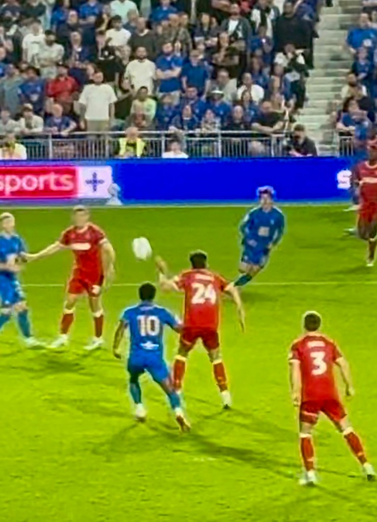Blues then absorbed Ipswich pressure, as Westwood changed things up for the visitors, throwing Ashley Young on for his debut alongside Broadhead, Chaplin and Al Hamadi. Just when it looked as if the home team would open their account with a win, in the final minute of added time, the visitors were awarded a penalty. Substitute Lyndon Dykes jumped to head away a ball with his arms raised and seemed to head the ball onto his hand, which the referee saw and immediately called a penalty. Up stepped George Hirst to calmly slot the ball home, levelling the scores and then launching a celebration in front of the home fans which led to a scuffle between the players.