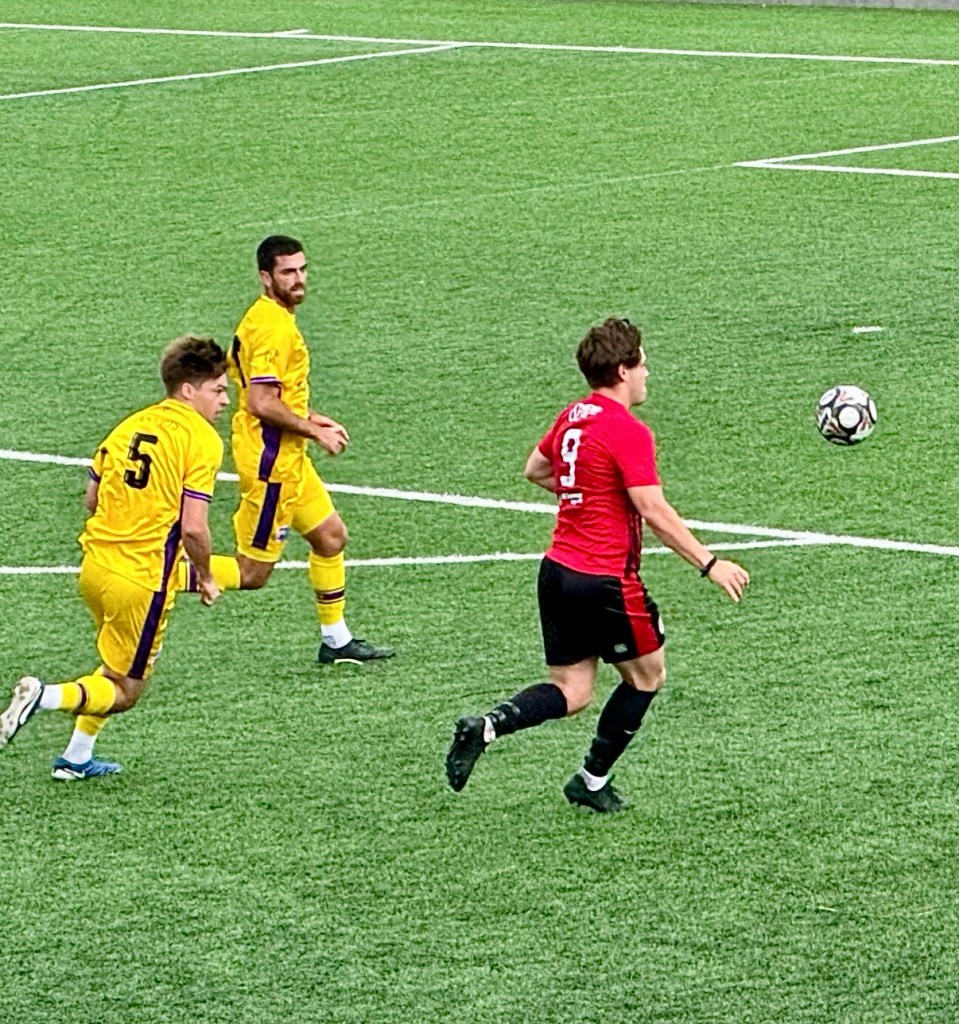 FC Elmstead had a journey of 70 miles to reach Hill Park today, coming from their club’s main ground in Chislehurst, Bromley. The club play their league games in Hextable, ground sharing with Sutton Athletic. The club colours of scarlet and sky blue evolved organically, when the original strip in the colours of claret and sky blue were boil washed, causing the claret colours to fade, which then stuck! Manager Brehn Chidley will have been pleased with the start his side have made this season, having won two and lost one of their opening three games, to sit third in a very competitive division, as “the cocks”, named after the cockerel on their badge, tty to improve on their twelfth place finish in 2024-25. Jamie Fearn has already bagged four goals in three games, so would have been someone Saltdean United would have wanted to mark closely in this eagerly anticipated cup tie.