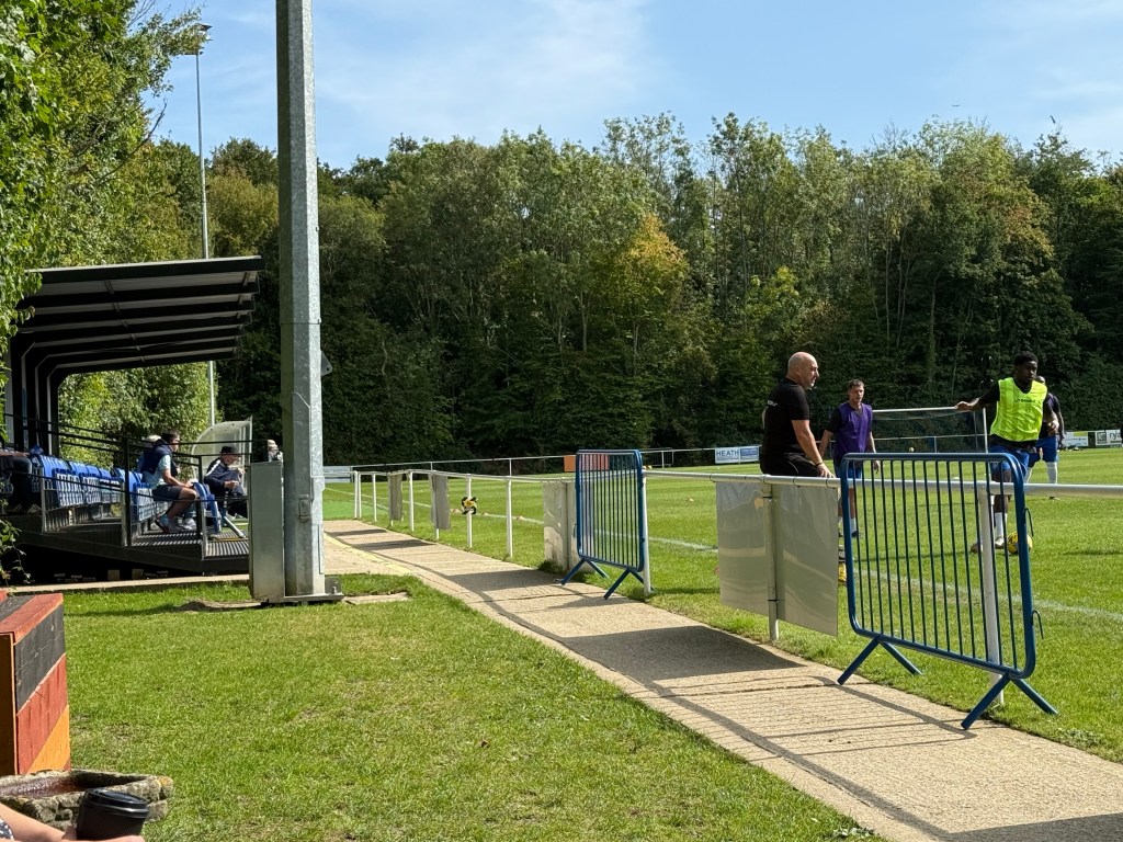 Roffey FC play at Chennells Brook, on the edge of Horsham, which is alternatively known as “the theatre of trees”. It certainly made an atmospheric setting for the game. The ground benefits from a grass pitch, a small grandstand as well as some lovely wooden seating and a great refreshment stand “Boar Bites”.