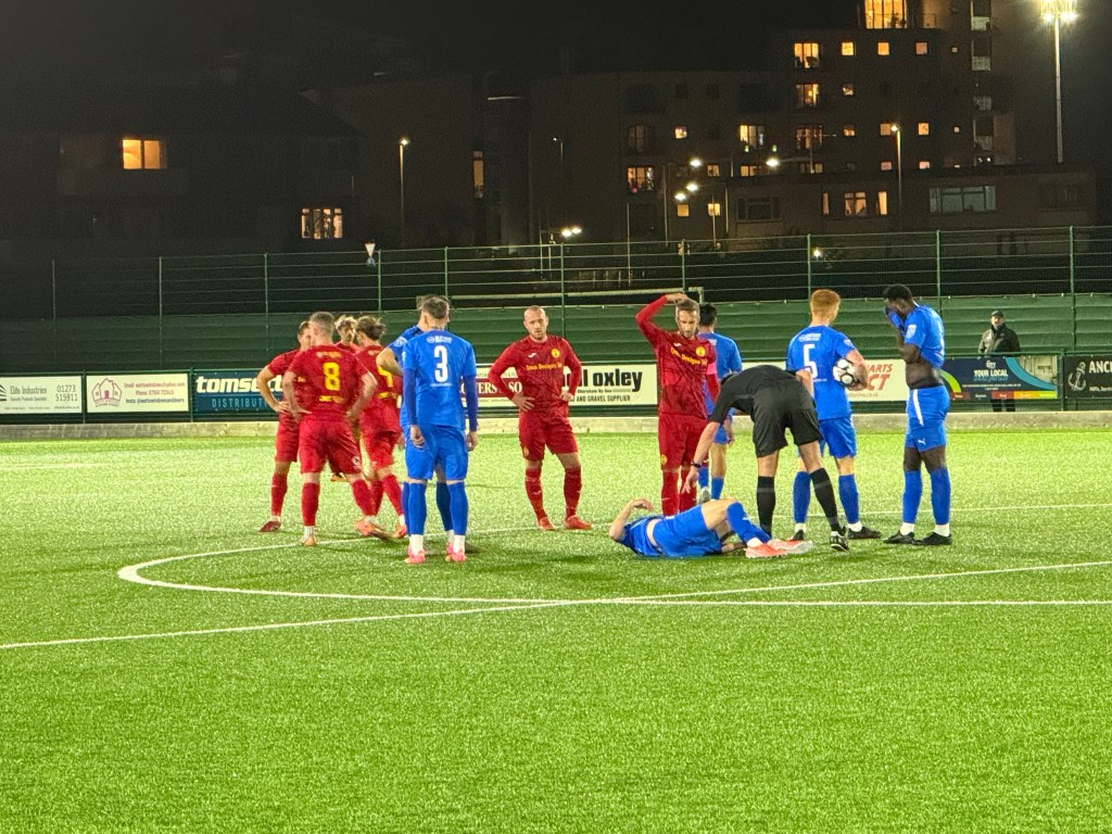 With ten minutes left on the clock, Lee Robinson pulled one back for Newhaven FC, with a shot on the turn from the edge of the penalty area.