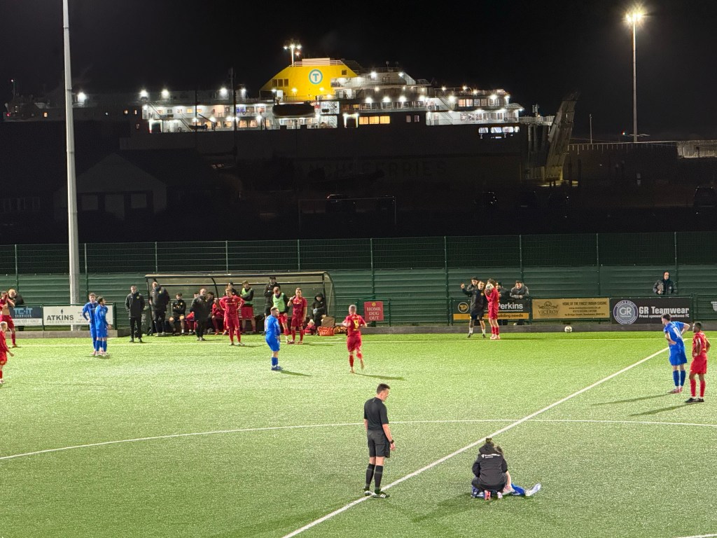 The clocks had gone back at the weekend and the weather had responded by being warmer as the nights drew in. I joined the local Football expert Trevor Knell, lead member of the Sussex non-League football podcast and his co presenter Gareth Spinks, for an evening that promised exciting football against the backdrop of ferries entering the harbour at Newhaven.
