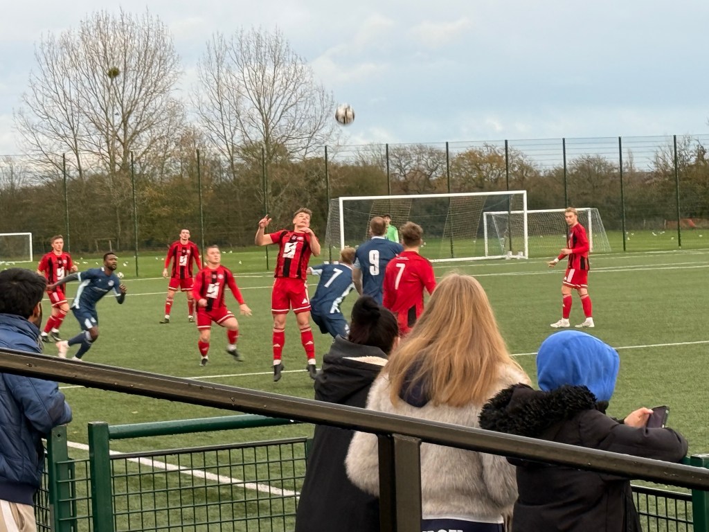 With twelve minutes of the second half gone, the visitors were ahead. A corner was met at the near post by Worthing United’s Dan Hills, who headed home to make it 1-2.