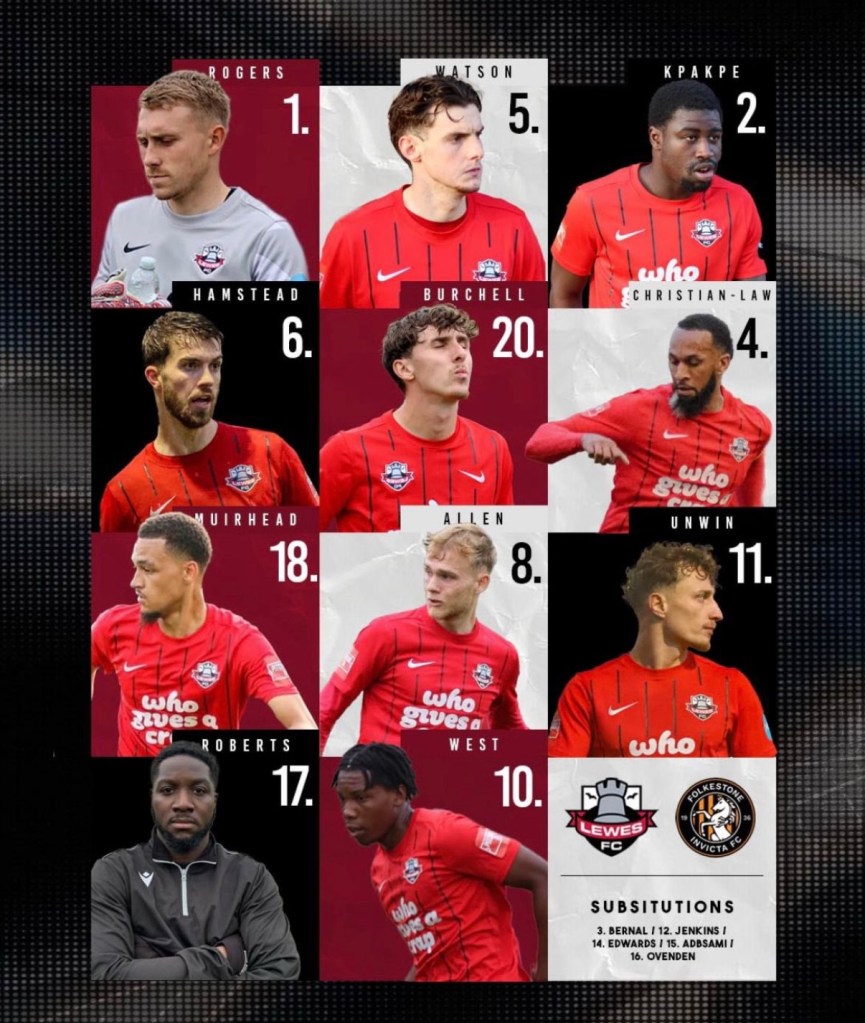 The game started with Folkestone Invicta asserting their superior passing play. However on the break, Lewes looked dangerous with the pace of Roberts and West always posing a threat. The half continued in the same manner with Lewes creating chances, whilst Invicta dominated much of the possession without making clear cut chances to score.