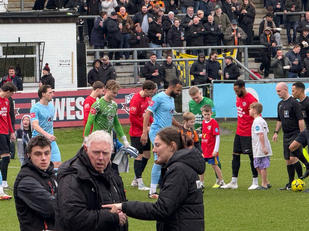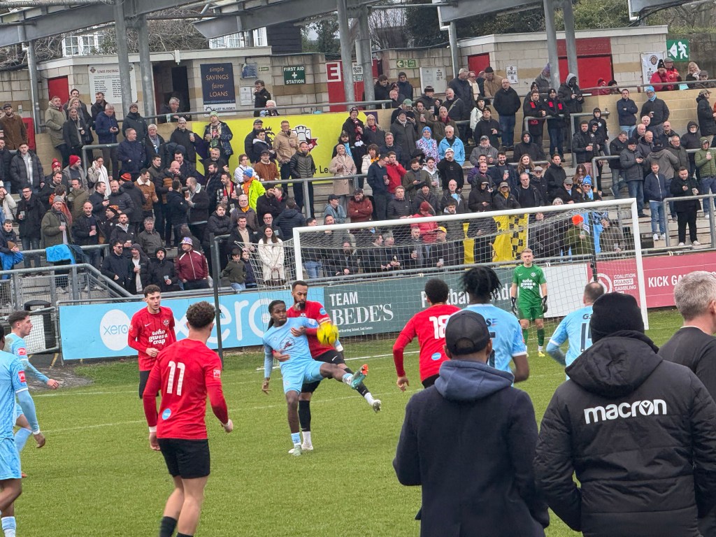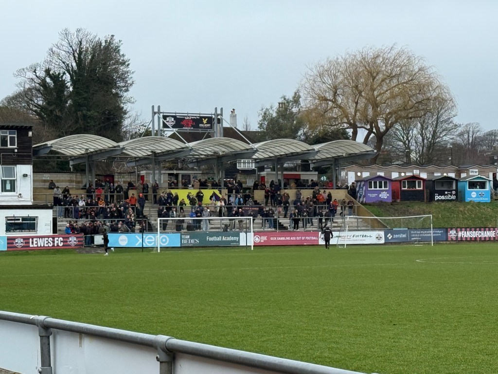 In contrast the Rooks, as the home side are called, have had a season of mixed fortunes, and progressing very little from their mid table position of 2024-25. At kick off the home side sat in eleventh place, with eleven wins, four draws and twelve defeats from their opening twenty seven games. Goals haven’t been easy to come by this season for Lewes and their thirty three goals have largely come from Ryan Bernal and Charlie Walker (both 5 goals), and Devonte West (4 goals). Manager, Craig Nelson would have wanted his Lewes side to step up today and show what their potential is and create a marker in their intent for the second half of the season.
