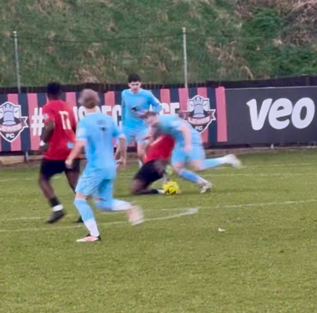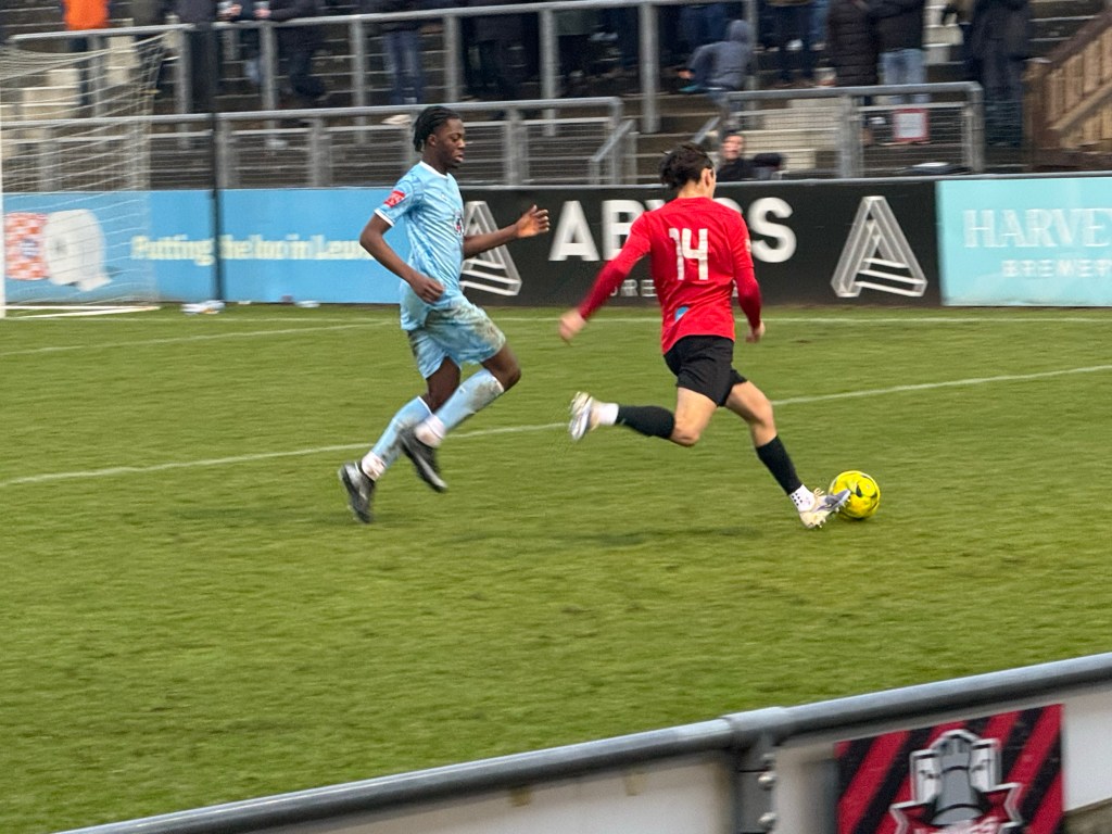 Three minutes later Lewes went down the other end and saw Roberts strike the post with a curling shot, but the ball was then swept to the opposite end by Folkestone for Jake Hutchinson to score his second in five minutes, making it 0-3.