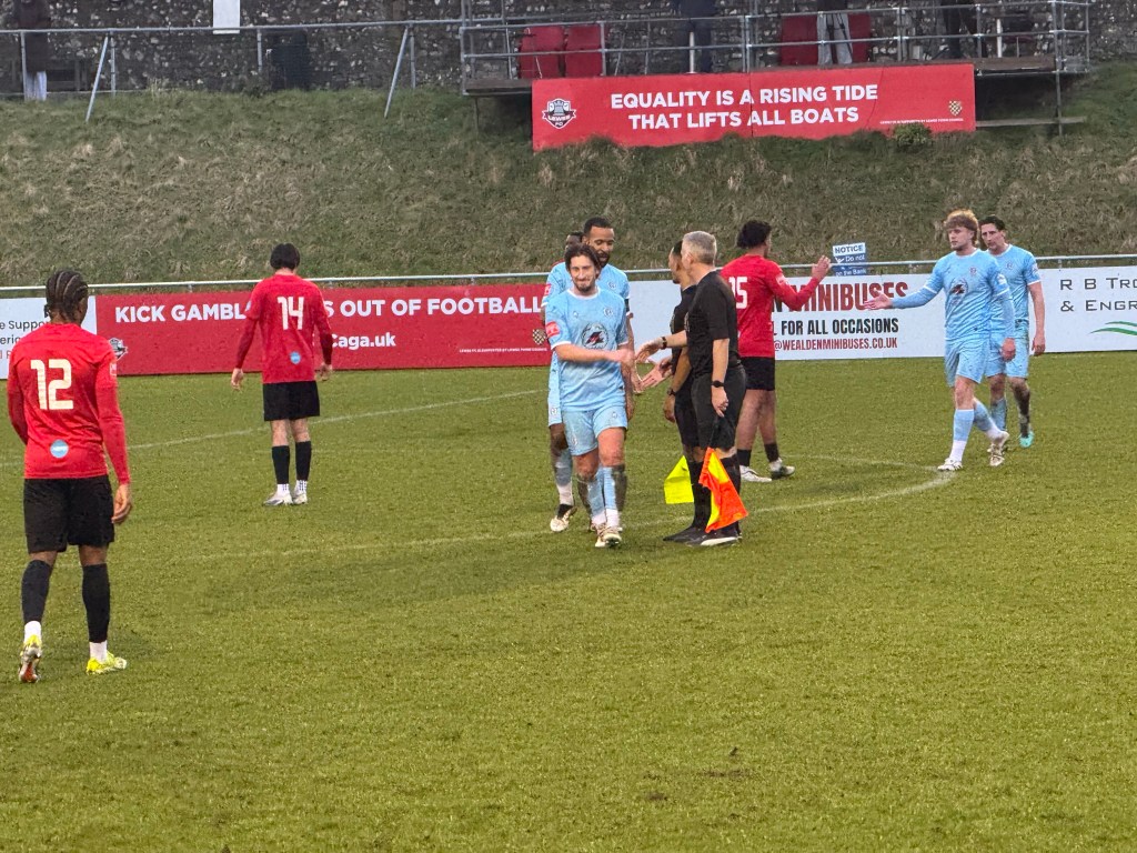 Folkestone then went close on two more occasions but Lewes’ defenders weathered the storm, to ensure that at the break the teams went in separated by the single goal.