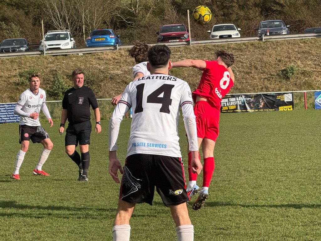 On 29 minutes the game changed when Chatham Town’s midfield dynamo, Jordi Robbins, was dismissed for an uncharacteristically reckless tackle, right in front of the dugouts.