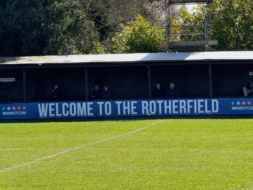 The Stags, as Midhurst & Easebourne FC are known, play at the Rotherfield, they share the ground with a cricket club and the ground benefits from a clubhouse and wooden stand with bench seating as well as a covered standing area. The pitch is grass and slopes from side to side quite severely.